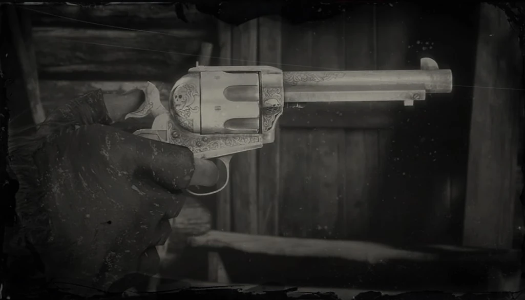 Ein seltener Cattleman-Revolver mit feineren Ziselierungen und geschlitzten Elfenbein-Griffplatten, der einst dem verstorbenen Revolverhelden Flaco Hernández gehörte, besiegt in einem Duell in der Nähe des Cairn Lake. Diese Waffe hat eine Munitionskapazität von sechs Schuss und kann Standard-, Hochgeschwindigkeits-, Splitter-, Express- und Explosiv-Revolvermunition verschießen.[1]