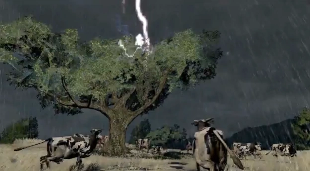 - In Ein Sturm zieht auf schlägt ein Blitz in die Alte Eiche ein. Ansonsten sieht man extrem selten, wie „echte“ Blitze über den Himmel zucken.