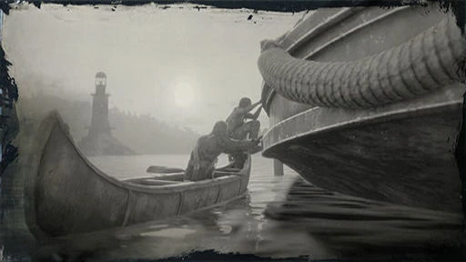 El plan de Dutch va tomando forma mientras cabalgamos, y hasta tiene cierto sentido. Desmonta a la orilla del río y recuerda no llevar equipadas armas cuerpo a cuerpo de cara a la medalla de oro. Debes noquear, no matar. Rema hasta el punto indicado junto al casco del barco para subir automáticamente.