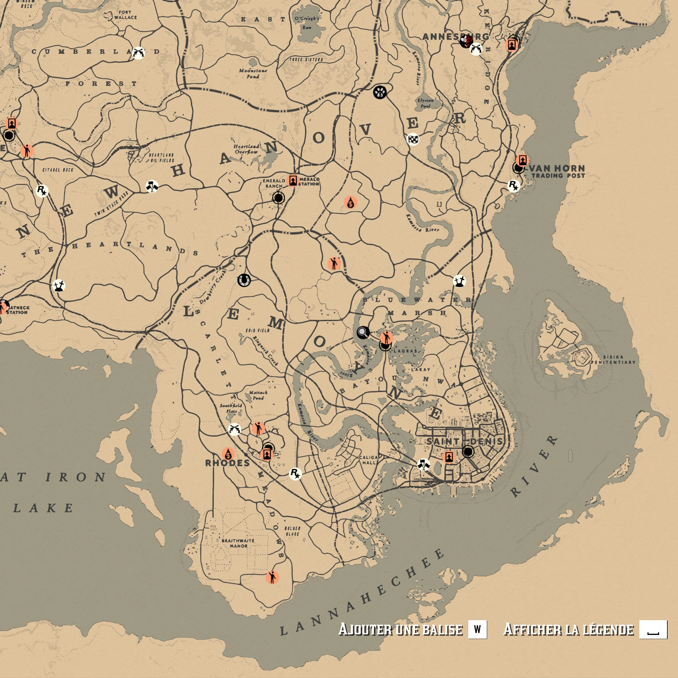 La rivière est située au sud et à l'est de Lemoyne. La rivière passe par les villes d'Annesburg, de Van Horn Trading Post, ainsi que Saint Denis.