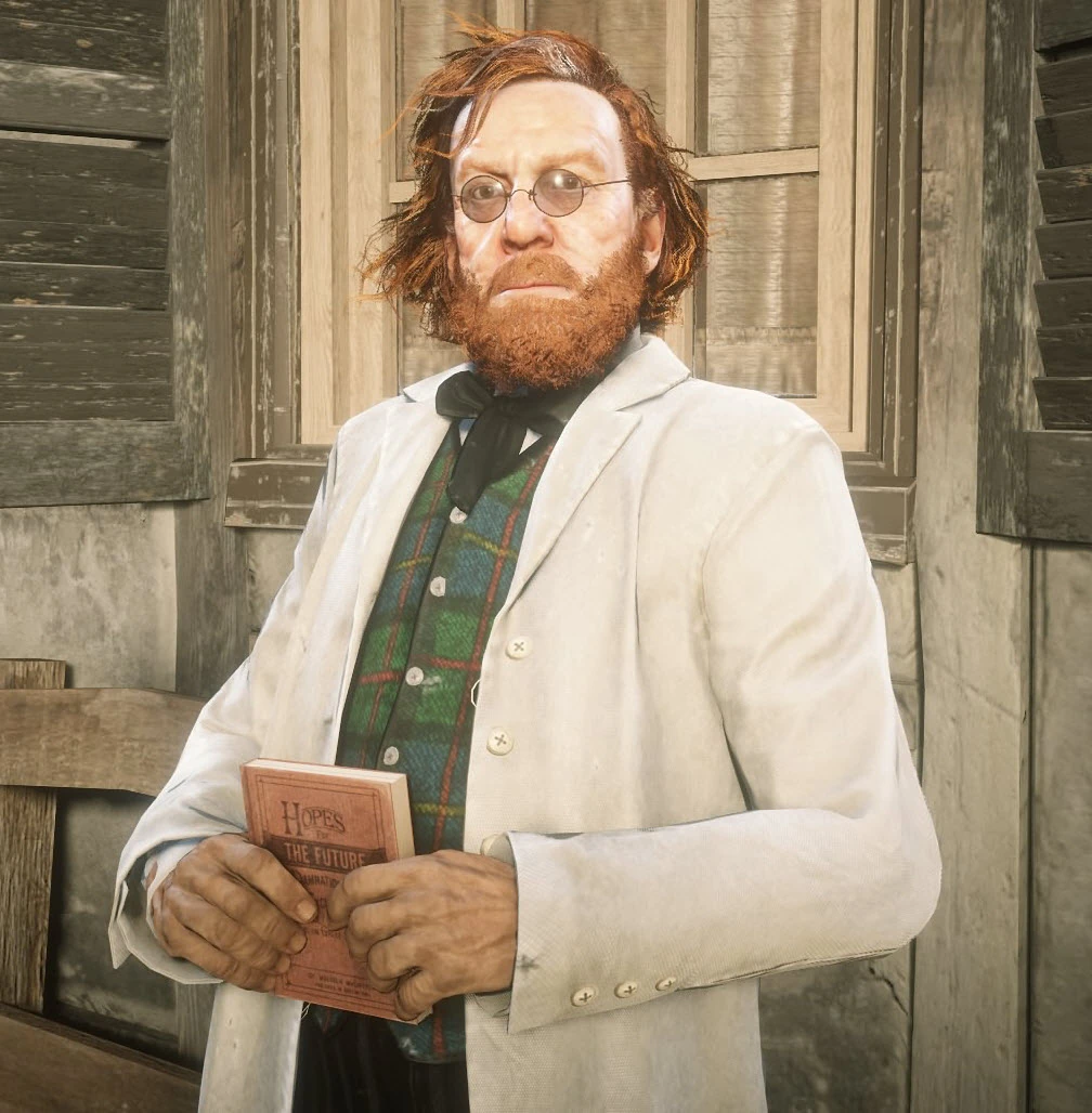 Malcolm MacIntosh est vu à Annesburg, en train de tenter de vendre son livre. Si le protagoniste le souhaite, il peut lui en acheter un exemplaire. Il prône également l'importance de la science et de la connaissance pour le bien du monde.