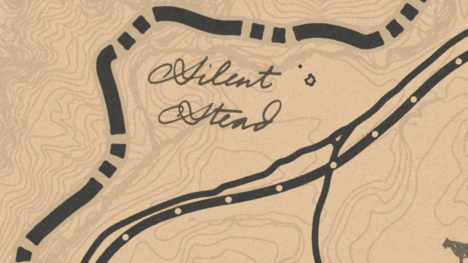 Silent Stead est un lieu abandonné consistant en une cabane de petite taille ainsi que du matériel. Le lieu est situé au sud-ouest de Rathskeller Fork, dans une petite plaine désertique. Une route et une voie de chemin de fer passent à proximité de la zone.