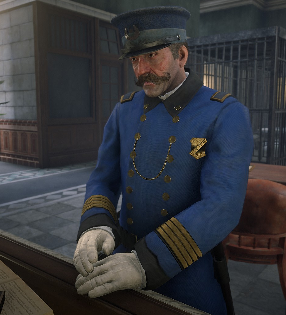 - Основное занятие Ламберта это стоять в полицейском участке облокотившись спиной на свой рабочий стол. Также его можно увидеть проверяющим тюремные камеры или работающим за столом.