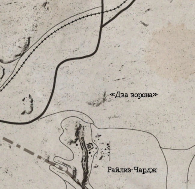 - Согласно последней газете в Red Dead Redemption, одной из банд, которых уничтожил Маршал Ли Джонсон к 1914 году, была «Банда Двух Воронов», что отсылает к данной локации.
