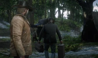 Обеспокоенный сообщениями об охотниках за головами действующими в этом районе и странным исчезновением Трелони, Датч просит Чарльза и Артура пойти навестить Трелони. Артур и Чарльз осматривают его лагерь, находят в нем следы борьбы и приходят к выводу что Трелони возможно захватили охотники за головами. Они вдвоем идут по его следу в лес где находят двух подозрительных людей у которых замечают сломанную трость Трелони. Артур и Чарльз пытаются у них спросить об Трелони, но двое людей раскрывают себя в качестве охотников за головами и нападают на Артура и Чарльза. Артур побеждает в драке одного из них, а Чарльз побеждает другого. Артур устраивает допрос выжившему охотнику за головами и тот рассказывает что Трелони держат на соседней ферме рядом с поместьем Брейтуэйтов. Артур и Чарльз отправляются на указанную ферму где находится большое колличество охотников за головами которые поймали Трелони. Артур освобождает Трелони и вместе с Чарльзом добивает оставшихся охотников за головами скрывающихся на кукурузных полях. Из-за возросшей опасности Трелони решает остаться с бандой в лагере.