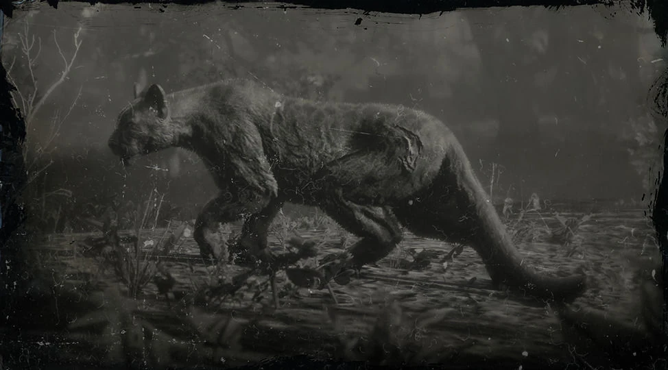 Легендарная пантера обитает к югу от Скарлетт-Медоуз в Лемойне. Ее легко опознать по короткой бурой шерсти с черными отметинами и многочисленным шрамам на шкуре. Эта хищница охотится на оленей, коз и диких кабанов. Самым лучшим оружием в охоте на такое коварное животное будет дальнобойное, например винтовка или лук с отравленными стрелами. После убийства этого животного у вас появится возможность создать редкий амулет.