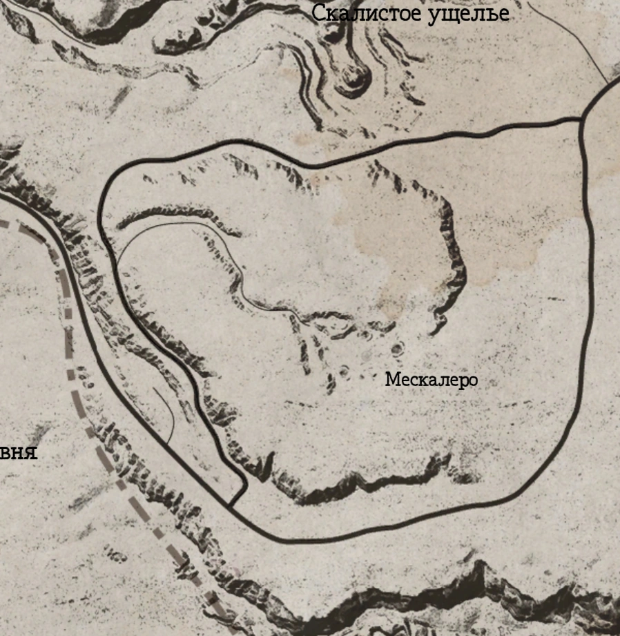 - Возможно, название этого места отсылает к реально существовавшему лагерю или к племени индейцев мескалеро-апачей.