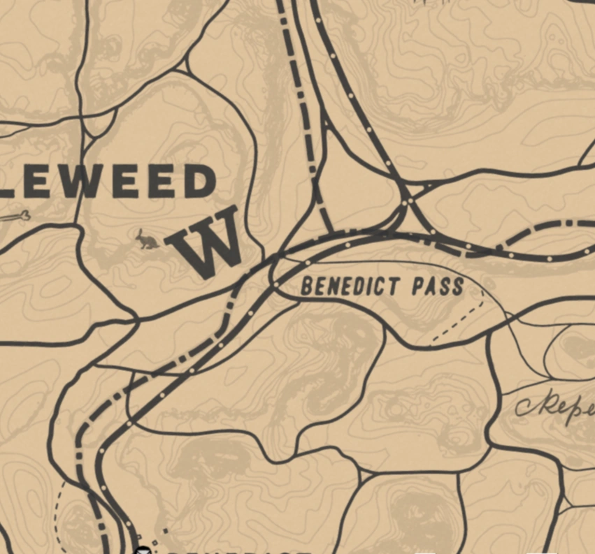 Перевал Бенедикта находится в регионе Рио-Браво, штат Нью-Остин. Эта локация представляет собой небольшой железнодорожный мост.