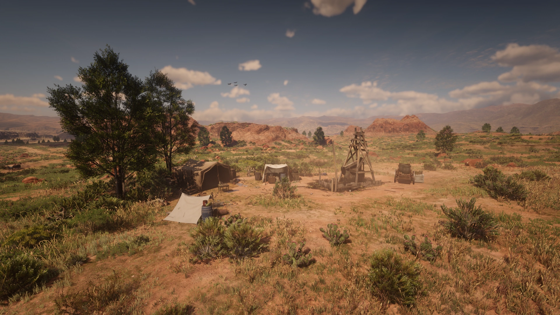 - В Red Dead Redemption в палатках на территории лагеря можно обнаружить три сундука, в каждом из которых спрятаны деньги.