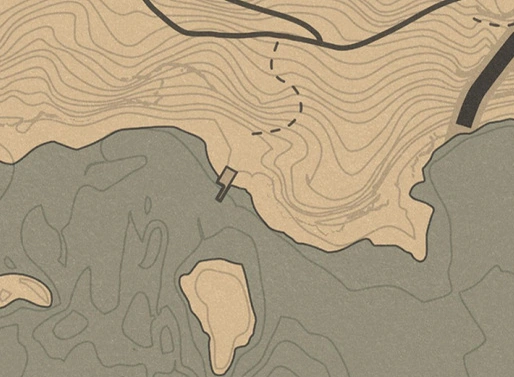 Участок стоит из самого дом с пристанью, главным элементом которого является коллекция рыбных трофеев, а также из различных лодок, бочек и повозок.