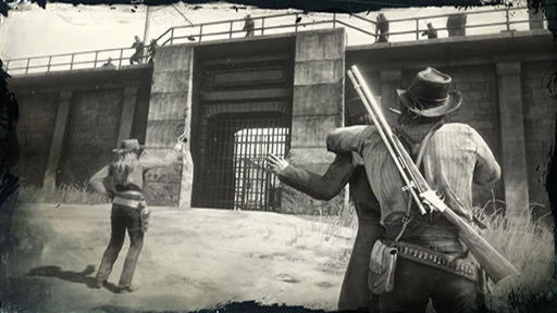 - Если игрок продолжит использовать снайперский прицел после того, как Артур убьет первых двух охранников, он увидит, как заключенные бегут к береговой линии, воспользовавшись ситуацией.