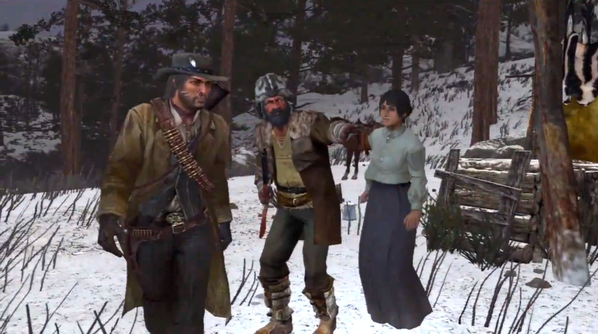 - Another thing in the opening cutscene, is that the frontiersman is first shooting and standing with a Winchester Repeater, but after John says the line: You feeling alright, mister? I've seen a lot of strange things recently, but no Sasquatch running around here. Nor no place else. They're made up, the frontiersman will suddenly be holding a Rolling Block Rifle, before switching to a Double-barrel shotgun after the cutscene.