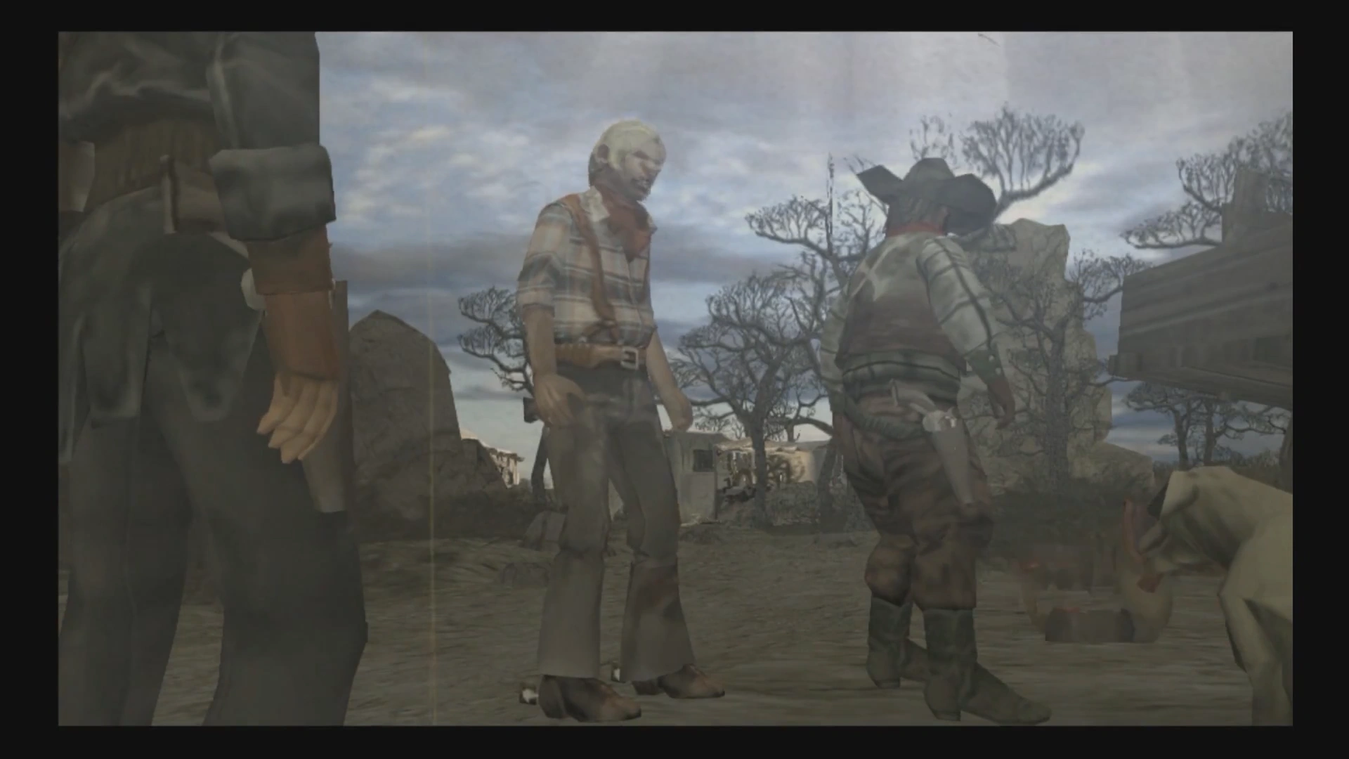 After talking to the traveling salesman, Twiggy Phelps, and Smitty approach and threaten Red. After the cut-scene, they become hostile and Red must kill them. After they are dead, an optional tutorial appears about taking cover behind objects. Following the tutorial, two more outlaws appear on top of the twin rocks while three begin to advance from the buildings. Red must now take cover and kill these targets (using a rifle is suggested and the on-screen text instructs the player how to change weapons).