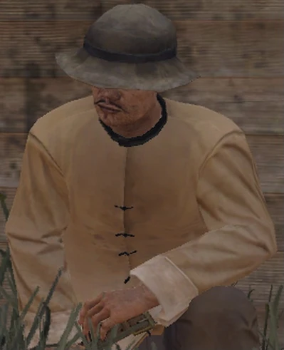 Chan Chut can be found working at El Matadero in the back room of the slaughterhouse tending to the meat. Whenever he's on a break, he can be found behind the slaughterhouse either smoking opium or sitting on a stool. At nighttime, he will stay behind the slaughterhouse by the campfire, also smoking opium or sitting on a stool.