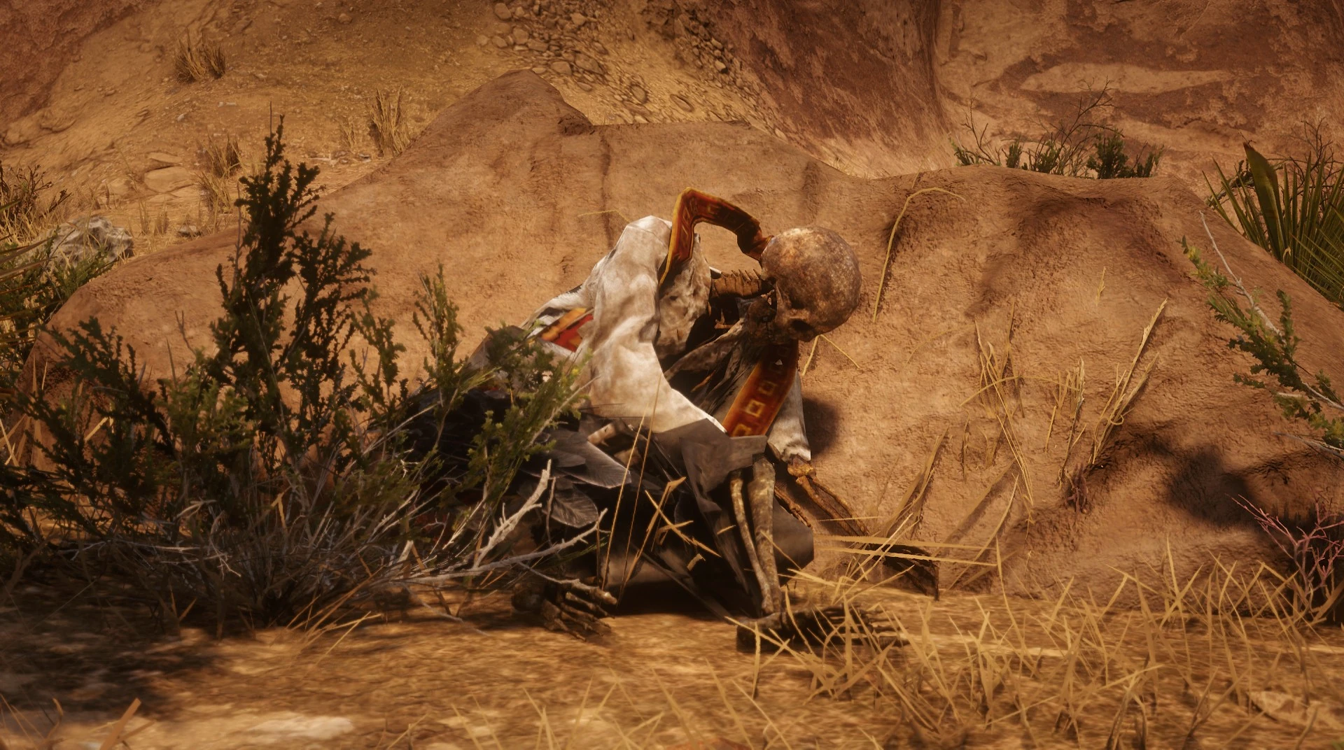 Zhou Yi | According to a letter from his uncle Zhou Wei, he came to America to look for his cousin Zhou Ming. His uncle blames Ming's wife Zhi Ruo for convincing him to go to America to make a fortune. Wei also considers that Ming's desire to prove himself independent of his family responsibilities in Shanghai and Hong Kong is neither admirable nor honorable. At some point during Yi's journey he perished, likely due to the harsh conditions of New Austin's desert. The fact he's in a fetal position indicates he likely died of starvation or dehydration. | Near Armadillo | He wears a chinese skull cap that the player can take, and speaks Mandarin. There is another man living in El Matadero with the surname Zhou in 1911/1914 but whether or not they are related is unknown. |