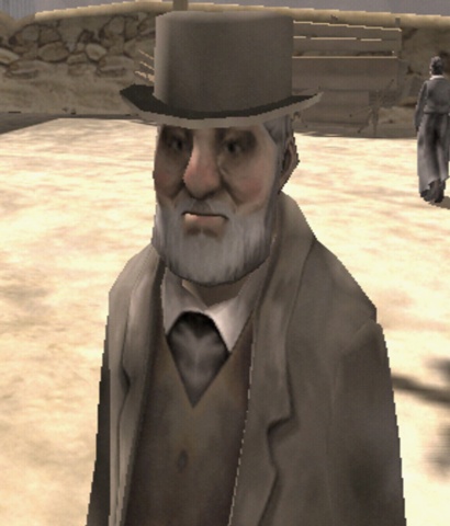 Jebidah is an old man, always dressed in an elegant gray suit with a top hat of the same color, it is actually a resident of Tarnation, but has come to the city of Brimstone after Tarnation has become home to bandits.
