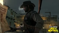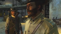 Inside Fort Mercer, Marston encounters Captain Cody Hixon putting up a poster. Thinking that Hixon has been given the work of underlings, Marston jokes with him about it.