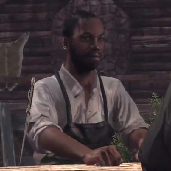 - He is seen in a trailer playing Liar's Dice in the old Morning Star ferry's casino with Honovi, whereas that location doesn't exist in the game.