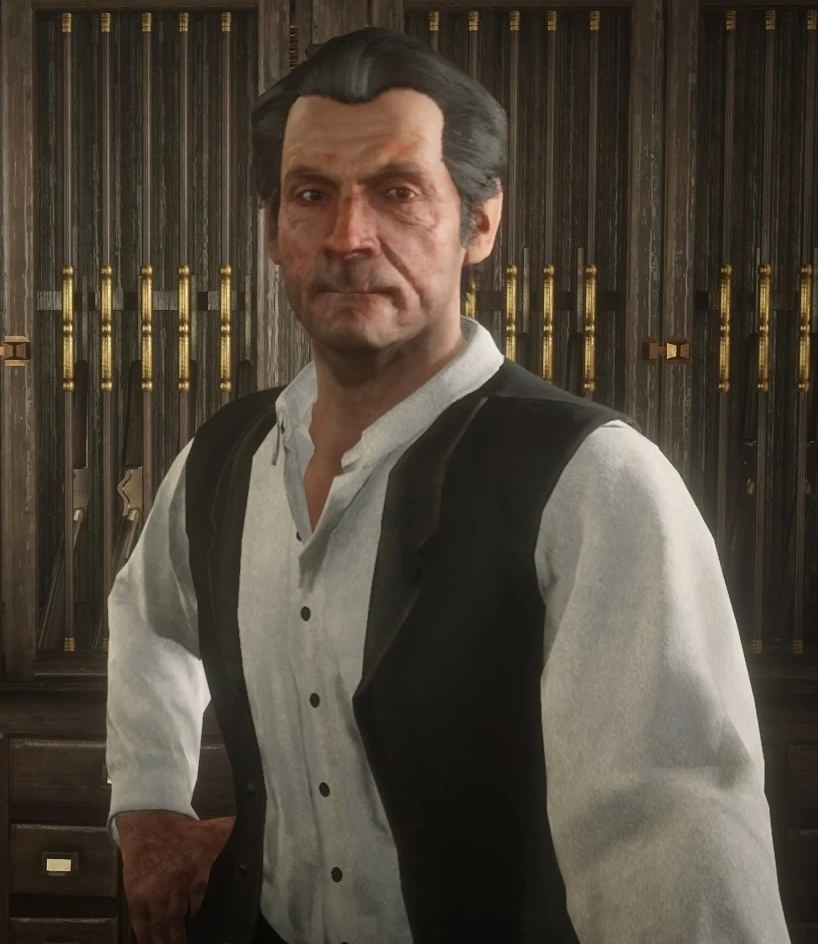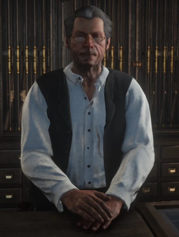 In the mission "The Sheep and the Goats", Arthur Morgan visits his store to obtain a Rolling Block Rifle. However, as he does not have the correct amount of money to buy it, he takes it without paying.